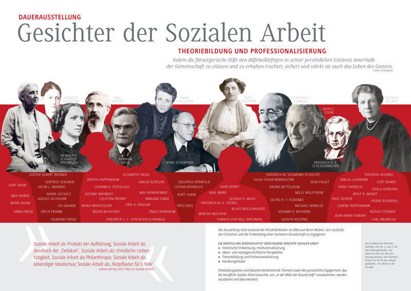 Soziale Arbeit hat sich immer wieder gewandelt. Ob sie systemstabilisierend oder systemkritisch wirkt, ob sie praktisch oder theoretisch wirksam ist und was diesen Beruf kennzeichnet, darüber gibt die Ausstellung Auskunft. Sie lädt dazu ein, die Pioniere und Pionierinnen kennenzulernen und das Entwicklungspotential Sozialer Arbeit zu verstehen. Die Plakate werden in der Lehre genutzt, um die Geschichte Sozialer anschaulich und biografisch einordbar zu machen. Die Arbeit an den „Gesichtern“ ist faszinierend und reich an neuen Entdeckungen.